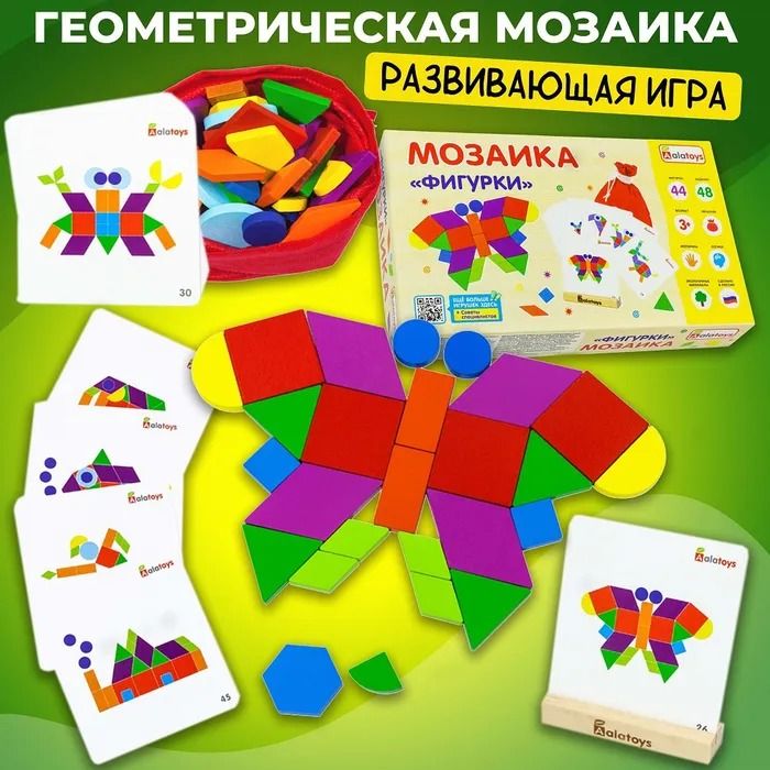 Читать все статьиAlatoys Мозаика «Фигурки» 44 фигурки, 48 заданий, тканевый мешочек