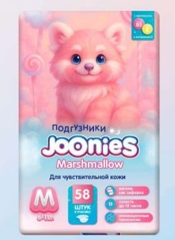 Читать все статьиJOONIES MARSHMALLOW Подгузники, размер M (6-11 кг), 58 шт.