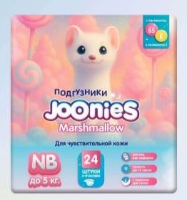 Читать все статьиJOONIES MARSHMALLOW Подгузники, размер NB (0-5 кг), 24 шт.