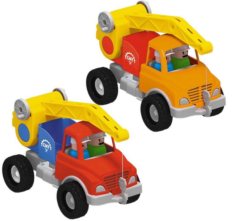 В комплекте идут две фигурки – водителя и крановщика, которые легко садятся на свои места.
