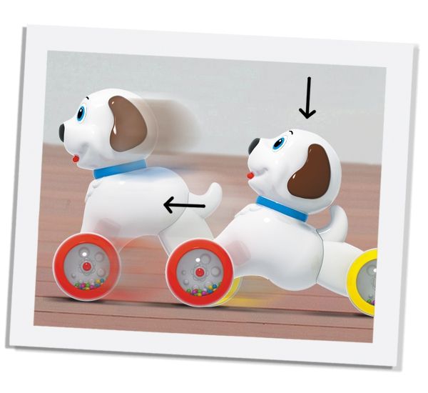 Ваш малыш с удовольствием подружится с игрушкой-покатушкой «Собачкой», ведь с ней так весело проводить время. Она может быть самым настоящим спринтером. Для этого малышу нужно взяться за голову стоящей на твердой поверхности игрушки и надавить вниз, приводя в действие механизм движения. Собачка укатится, набирая скорость. Вашему малышу обязательно захочется догнать её.