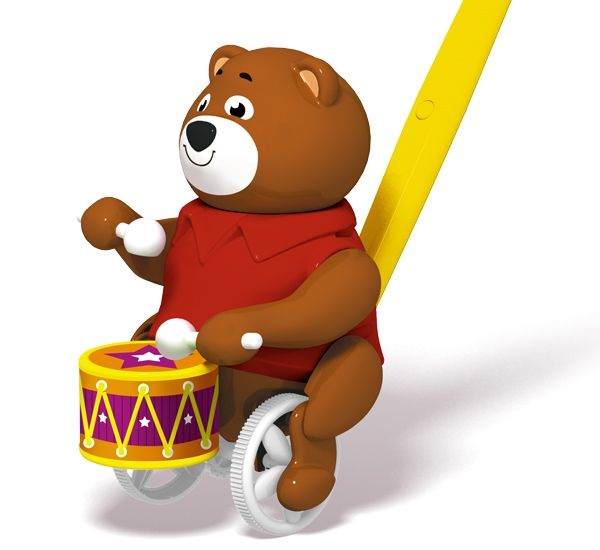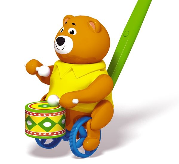 Каталка «Барабанщик» - симпатичный мишка, который умеет стучать палочками по барабану. Наш мишка приветливо улыбается, поэтому на его мордочке всегда доброе выражение. Мишка-барабанщик станет хорошим другом для ребенка на прогулке и дома. Дети будут увлеченно бегать, держась за ручку каталки. Чем быстрее будет бегать ваш малыш, тем активнее мишка будет настукивать свои ритмы и сучить толстыми ножками. Мы уверены, что мишка-барабанщик обязательно понравится всем и подарит замечательное настроение вашим непоседам! Для детей от 1 года. Развивает цветовое восприятие, координацию движений, звуко-моторную координацию. Формирует эмоциональную отзывчивость и игровые навыки.