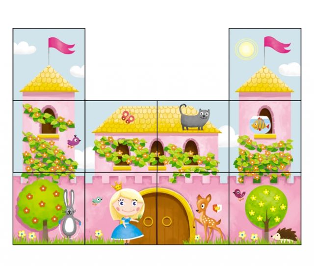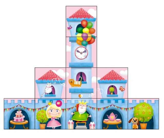 С кубиками «Дворец принцессы» вас ждет увлекательный процесс создания 4х разных замков. Рядом с первым замком принцесса гуляет на улице с лесными зверушками в солнечный день. На балконе второго дворца принцесса ждет своего любимого и единственного принца. В окошке третьего замка видно, что принцесса рисует, вдохновляясь красивыми видами. А в четвертом замке в самом разгаре день рождения папы принцессы, на который она пришла с подарками. Для начала ребенок будет собирать кубики, сравнивая с готовыми картинками на упаковке, а потом уже самостоятельно станет искать подходящие фрагменты, соединяя их в единую композицию. Девочкам особенно будет интересно играть с кубиками, погружаясь в сказочный мир девичьих фантазий. Для детей от 1 года. Тренируют концентрацию внимания. Помогают развить логическое мышление, фантазию, мелкую моторику, пространственное мышление и наблюдательность. В процессе игры закладываются навыки конструирования.