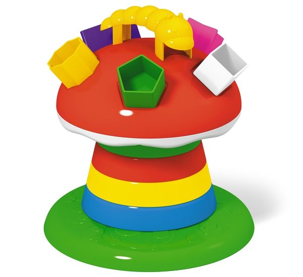 Логическая пирамидка «Гриб на полянке» - это две игрушки в одной. Основание, это обычная пирамидка, а шапочка гриба выполнена в виде сортера. Для удобства малышей, которые любят таскать за собой игрушки по комнате, на шапочке гриба поселилась гусеничка-ручка. Пирамидка имеет толстый стержень с монолитным основанием, 3 удобных для захвата кольца и устойчивую полянку-подставку. Фигурки сортера сделаны с учетом возможностей малышей. Играя с фигурками, ребенок научится различать цвета и формы. Для детей от 1 года. Развивает логику, мелкую моторику, зрительно-моторную координацию. Формирует представления о цвете, размере, последовательности и форме.