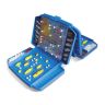 Настольная игра «Морской бой» - это более удобный и привлекательный вариант традиционной забавы. В новом виде она является достойным конкурентом модным гаджетам. Раскладывающийся чемодан для двух участников позволит каждому их них почувствовать себя капитаном флотилии. Как будто глядя в монитор, перед малышами будет раскрываться карта кораблей противника. В внизу открывается обзор на море со своими кораблями, почти как настоящими. Игра «Морской бой» идеальна для того, чтобы познакомить детей с основами стратегии и тактики. Для детей от 6-и лет. Учит играть по правилам, взаимодействовать с другими детьми. Формирует произвольное внимание. Развивает память и логическое мышление.