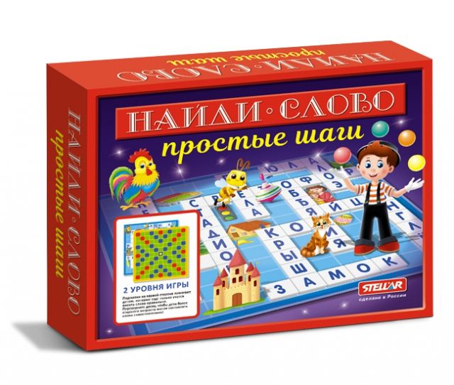 «Найди слово. Простые шаги» - это два варианта популярной интеллектуальной игры в одной упаковке! Игра поможет вашему ребенку познакомиться с алфавитом и новыми словами, увлекательно провести время в кругу друзей или семьи.