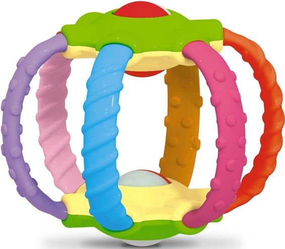 В верхней и нижней части погремушки находятся цветные шарики, которые можно увлечённо крутить в разные стороны. А если потрясти погремушку – она будет приятно шуршать, вызывая ещё больший интерес у ребёнка.