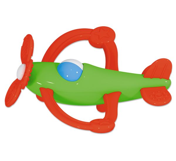 Погремушка-прорезыватель "Самолётик" разнообразит досуг малыша и обеспечит комфорт в самый сложный период прорезывания зубов.