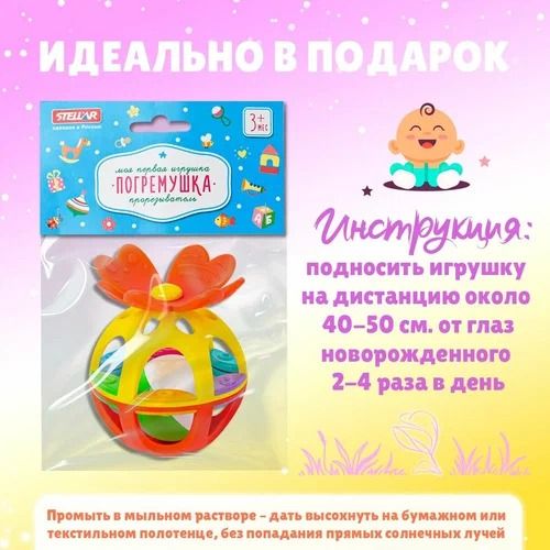 Для лучшего эффекта стоит подносить игрушку на дистанцию около 40-50 см. от глаз новорожденного 2-4 раза в день.