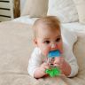 Игрушка имеет удобную для маленьких ручек форму и малый вес, всего 30 грамм, поэтому крохе будет удобно совершать манипуляции и можно не бояться что крохе будет тяжело. А рифлёные детали нежно массируют дёсны и дарят ощущение спокойствия и облегчения.
