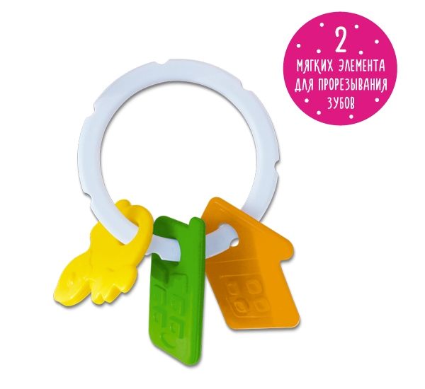 «Прорезыватель с погремушкой» – необходимая игрушка для младенца. Она развивает малыша и помогает снять боль в деснах. Сам прорезыватель имеет удобную для захвата форму кольца, на котором расположены разноцветные подвесные элементы. Малыш может трясти игрушку, издавая звуки; передвигать пальчиками подвесные элементы или пробовать «на вкус». Для детей от 0 мес. Развивает остроту зрения и слуха, цветовосприятие, тактильную чувствительность, мелкую моторику. Формирует зрительно-моторную и зрительно-слуховую координацию.