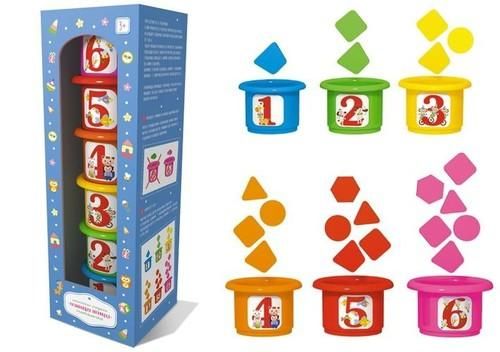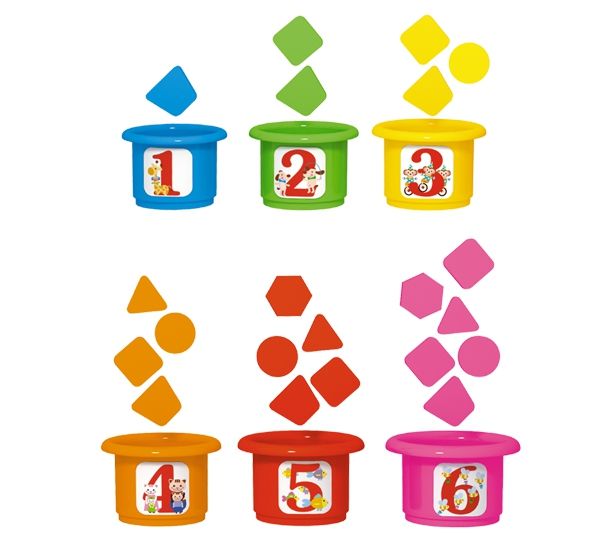 Развивающая пирамидка «Считалочка» - это оригинальная игра, которая состоит из 6 стаканчиков и 21 цветной геометрической фигурки. На каждом стаканчике изображена определенная цифра от 1 до 6. Задача малыша разложить все фигурки по стаканчикам подходящего цвета. Количество фигурок для каждого стаканчика совпадает с цифрой, которая изображена на самом стаканчике. Например, в голубой стаканчик с цифрой «1» необходимо положить 1 геометрическую фигурку голубого цвета и т.д. Развивающая пирамидка «Считалочка» очень полезна для малышей, так как в процессе игры ребенок сможет многому научиться: определять, сравнивать и находить идентичные цвета; считать и распознавать цифры от 1 до 6; подбирать стаканчики по размеру, а также отличать геометрические фигуры. В игре представлены 5 видов геометрических фигур: круг, треугольник, квадрат, трапеция и шестиугольник. В процессе игры малыш без труда научится различать фигуры и выучит их названия. Развивающая пирамидка «Считалочка» - это не только традиционная пирамидка-стаканчики, но и многофункциональная развивающая игра для малышей. Для детей от 3 лет. Развивает логическое мышление, цветовое восприятие, мелкую моторику и координацию рук малыша и, как следствие, речевые навыки. Формирует элементарные представления о цвете, размере и форме. Учит счету до шести.