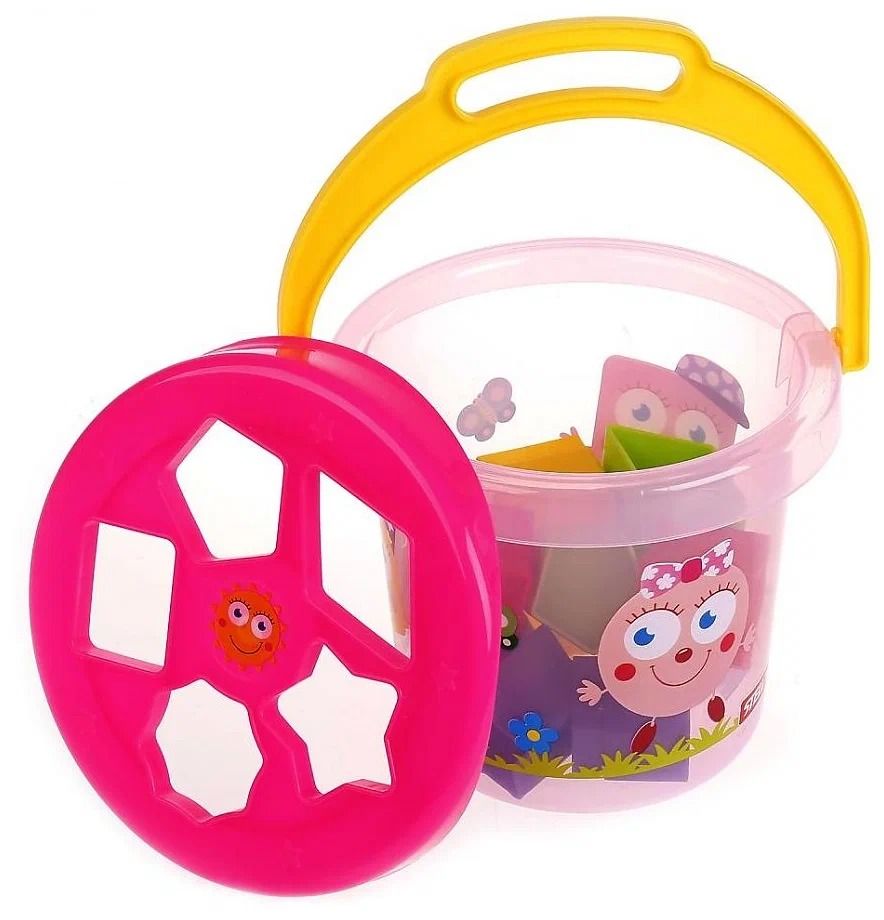 Ведро-сортер – развивающая игрушка для малышей. Задача ребенка – подобрать к фигурным ячейкам в крышке подходящие разноцветные геометрические фигурки. После этого фигурка окажется в ведерке. Крышка надежно держится, но при желании её можно без труда снять, вытащить фигурки и повторить увлекательную сортировку. Ведро имеет удобную ручку и служит контейнером для хранения фигурок. Наш сортер поможет развить у малыша усидчивость, наблюдательность, логику, восприятие формы и мелкую моторику. В процессе игры малыш познакомится с различными фигурками, выучит их названия и научится различать цвета. Наше ведро имеет двойное назначение, оно служит не только в качестве развивающего сортера, но и подойдет для игр в песке и воде. Ведро, крышечка и фигурки сделаны из высококачественных материалов, которые совершенно безопасны для здоровья ребенка. Детские психологи и педиатры уверены, что игрушки-сортеры значительно ускоряют развитие малышей. Ведро-сортер компании «Стеллар» позволит малышу проводить время с пользой для его развития. Для детей от 1 года. Развивает логику, воображение, мелкую моторику, зрительно-моторную координацию. Формирует элементарные представления о цвете, размере и форме.