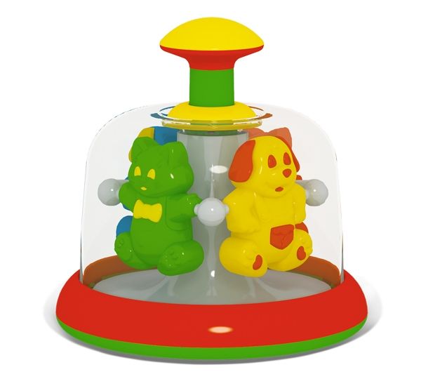 Наша юла заводится легким нажатием на рукоятку, что доступно даже младенцам. От прикосновений малыша запускается карусель под прозрачным куполом. Малыш может наблюдать за движением фигурок, влиять на их скорость и слушать звуки. Юла прочно стоит на поверхности и «не убегает» от малыша, поэтому он может играть с ней даже в одиночестве. А цветовое решение игрушки полностью отвечает особенностям младенческого восприятия. Рекомендация по уходу за юлой. Протирать влажной тряпкой, не мочить в воде.