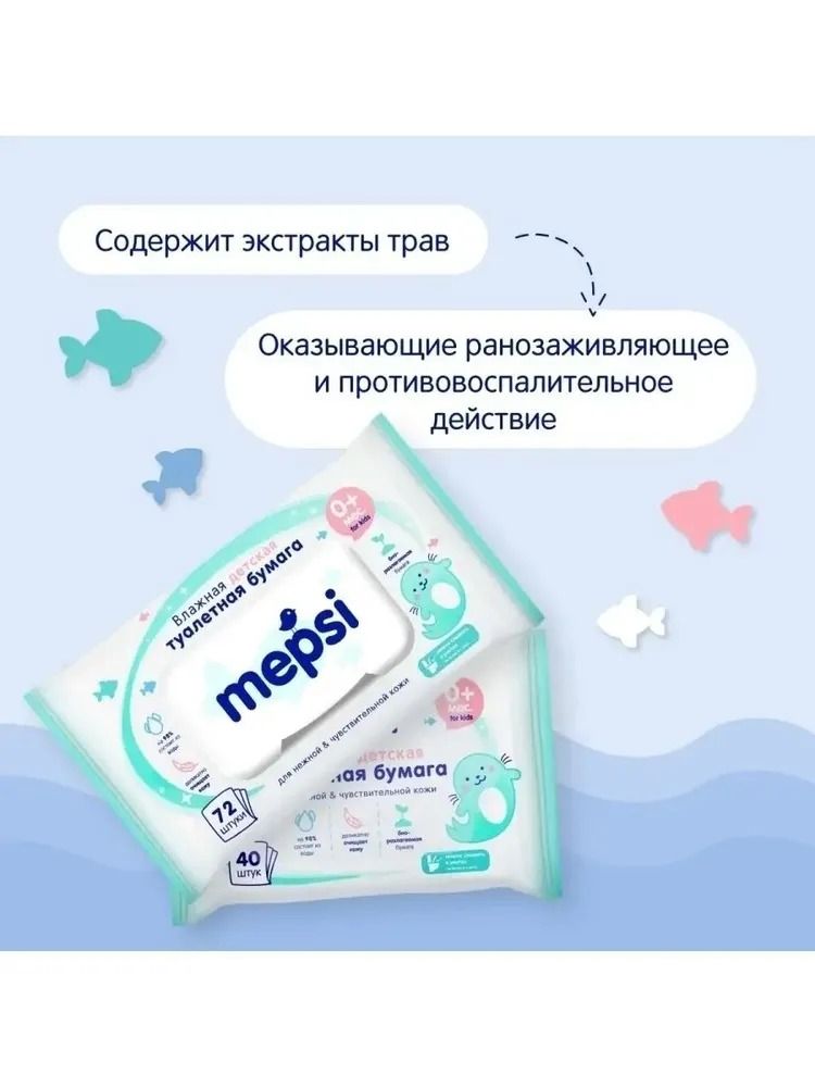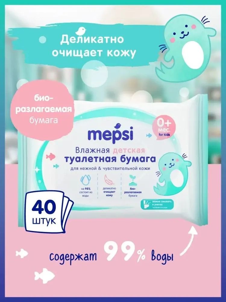 Читать все статьиБумага туалетная влажная для детей MEPSI, 40 шт.