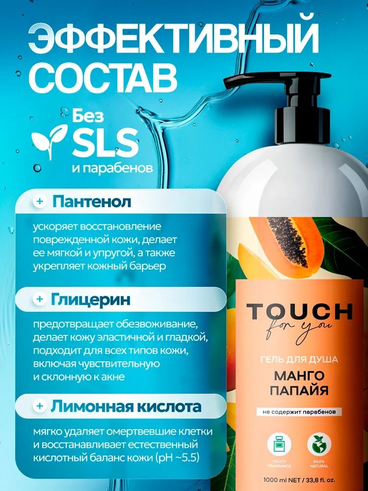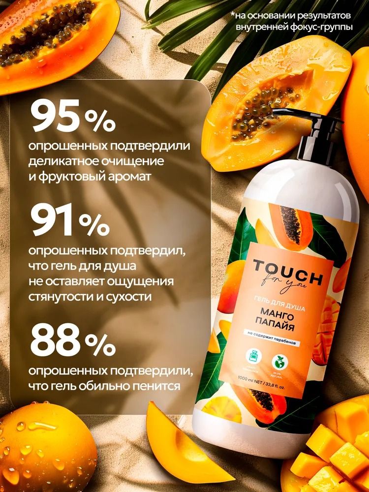 Читать все статьиГель для душа Touchforyou «МАНГО-ПАПАЙЯ»,1л