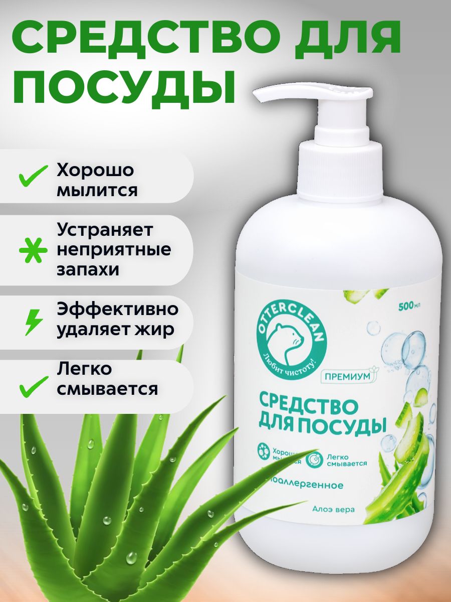 Читать все статьиГель для мытья посуды OTTERCLEAN «Премиум», алоэ Вера, 500 мл.