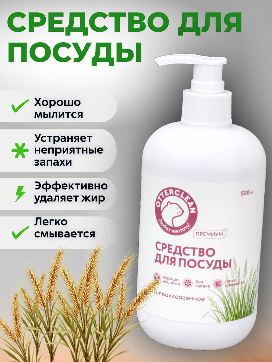 Читать все статьиГель для мытья посуды OTTERCLEAN «Премиум», гипоаллергенное, 500 мл.