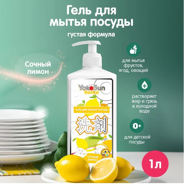 Читать все статьиГель для мытья посуды YokoSun, Сочный лимон, 1л, /12