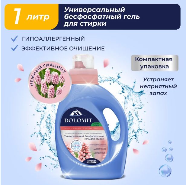 Читать все статьиГель для стирки MARABU Dolomit, универсальный бесфосфатный, «Нежный гиацинт», 1л