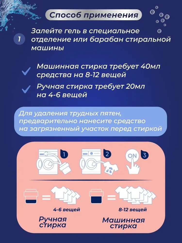 Благодаря уникальной формуле, гель легко растворяется даже в холодной воде, что позволяет использовать его для стирки деликатных вещей. Упаковка геля имеет удобный дозатор, который позволяет легко контролировать количество используемого средства. Кроме того, гель для стирки полностью безопасен для окружающей среды, так как не содержит вредных химических веществ.