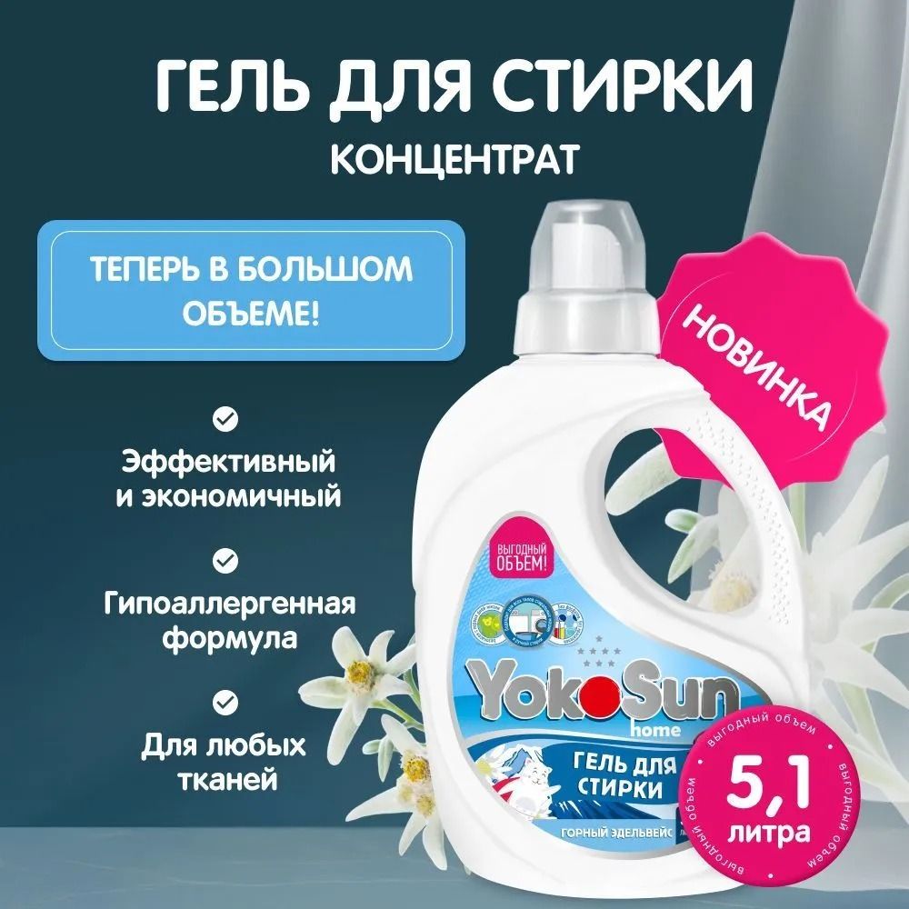 Читать все статьиГель для стирки YokoSun, Горный эдельвейс, 5,1 л., /КИТАЙ