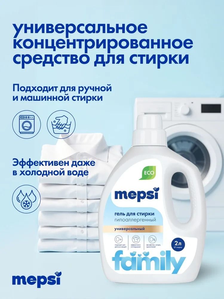 Читать все статьиГель для стирки гипоаллергенный универсальный Family MEPSI, 2л