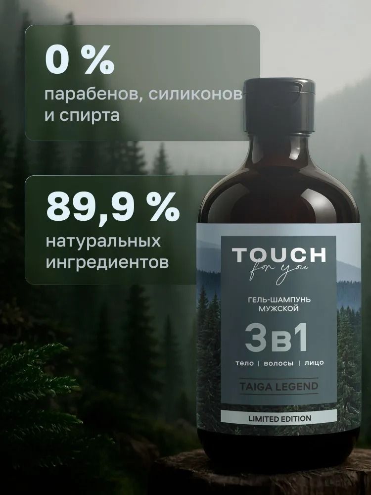 Читать все статьиГель-шампунь 3в1 мужской Touchforyou «TAIGA LEGEND», 500 мл