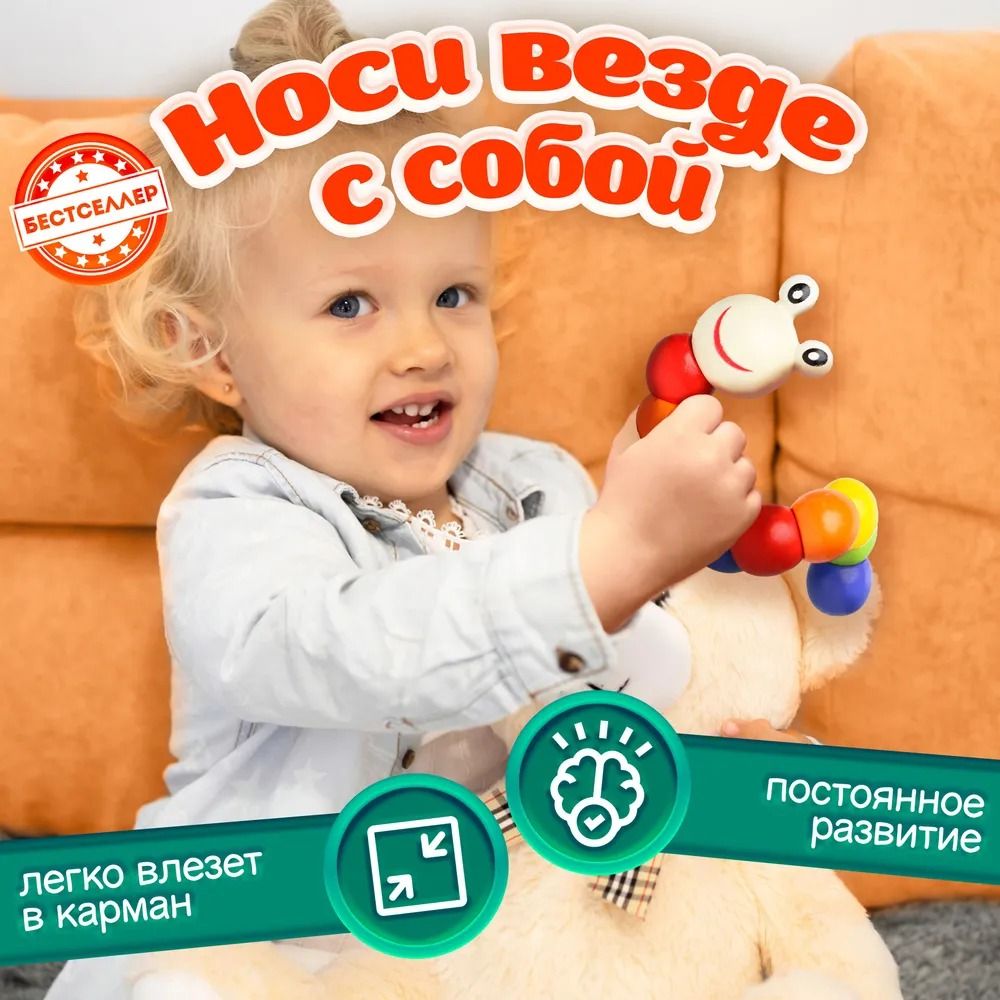 Гусеница деревянная — это уникальная развивающая игрушка, специально созданная для малышей до года. Она сочетает в себе элементы классического сортерa и методики Монтессори, которая акцентирует внимание на естественном обучении и развитии детей. Данная игрушка не только способствует развитию мелкой моторики, но и помогает малышам в изучении форм, цветов и размеров, что делает ее незаменимым пособием в раннем детском развитии.