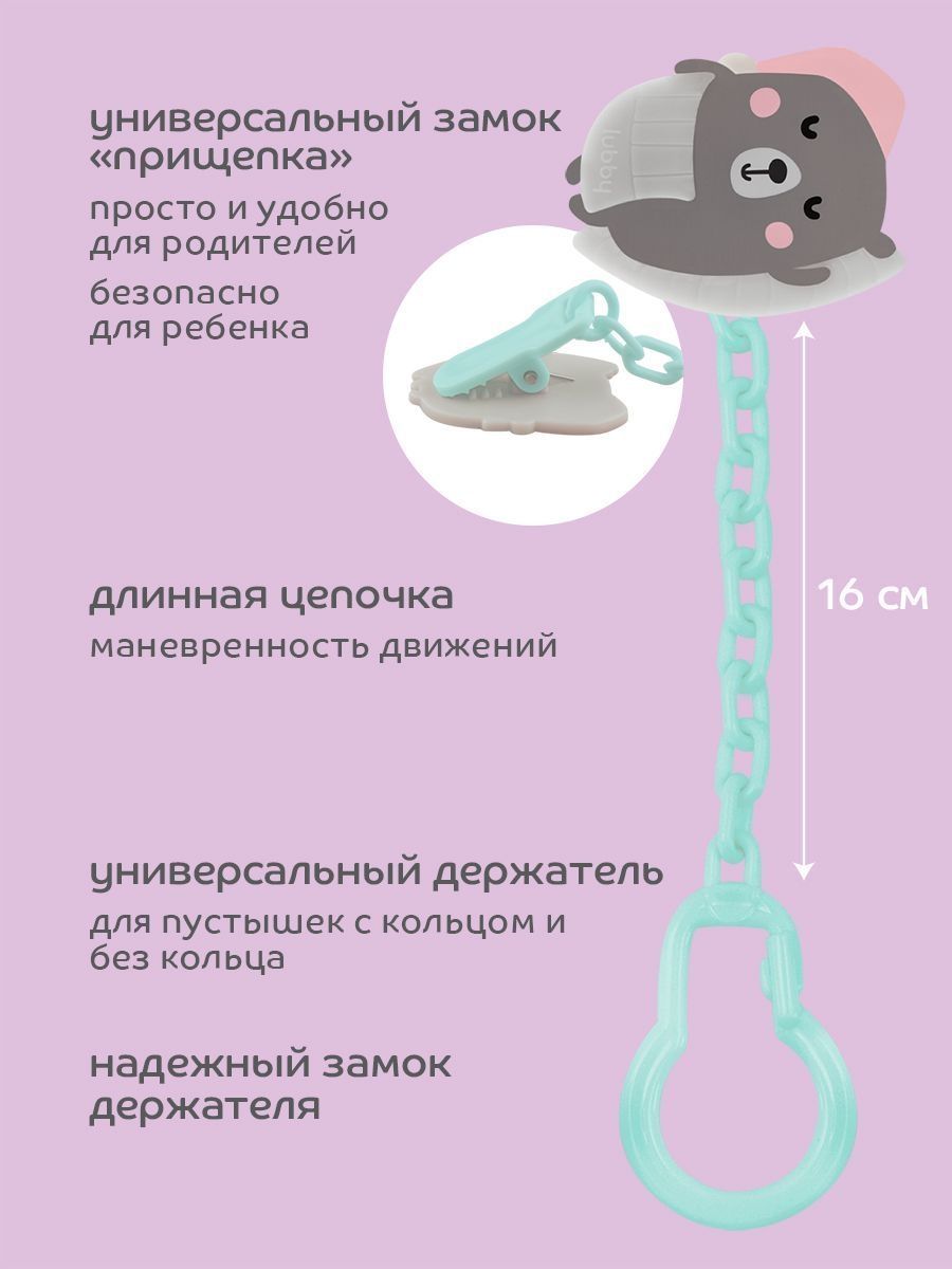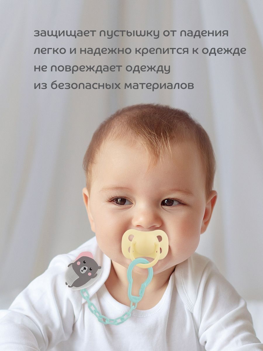 Читать все статьиКлипса-держатель для пустышек, цепочка, от 0 мес, медведь, PP