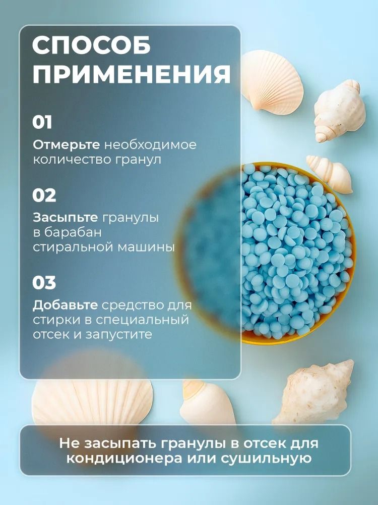 Это инновационные гранулы, которые работают даже в холодной воде, при этом бережно сохраняя качество ваших вещей. Также парфюм для белья в гранулах обладает антистатическим эффектом и облегчает процесс глажки.Кондиционер в гранулах для белья Рева Кеа подходит для любых видов тканей, сохраняет стойкость цвета черных и цветных вещей, подходит для белой одежды, сохраняя естественность цвета ваших одежды и белья. Кондиционер в гранулах обладает эко составом и подходит как для для детской одежды, так и для людей с чувствительной кожей. Он гипоаллергенен и не вызывает раздражений. Кроме того, парфюм кондиционер для белья в гранулах нежно воздействует на волокна ткани, сохраняя качество и цвет материала на долгое время. Кондиционер для белья в гранулах парфюм обладает удобной формой: даже если он внезапно рассыпется, его удобно будет собрать, в отличии от жидких средств. Он полностью вымывается водой, не оставляет разводов и удобен в применении.