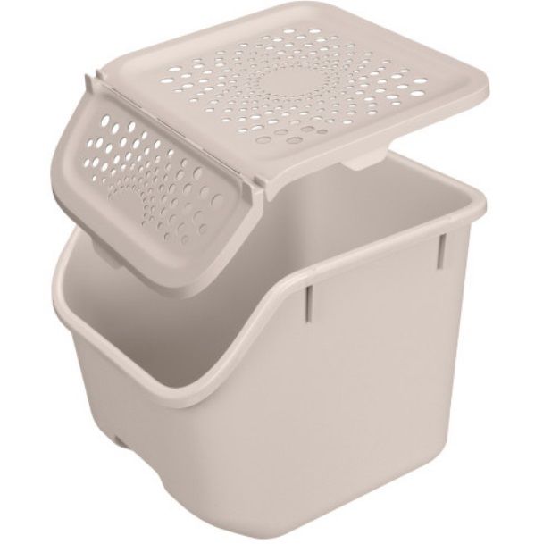 Линейка контейнеров для разных видов овощей представлена в двух объемах: 7,8 л и 11,3 л. Контейнеры можно ставить друг на друга в устойчивую стопку, оптимизируя полочное пространство на кухне, балконе или в кладовой. Крышка полностью снимается, что позволяет удобно наполнить контейнер. Многочисленные вентиляционные отверстия обеспечат естественную циркуляцию воздуха и отвод избытка влаги. Клапан крышки фиксируется в открытом положении не перекрывая доступ внутрь контейнера расположенного сверху.
