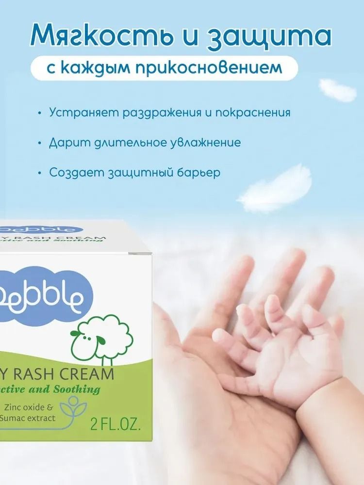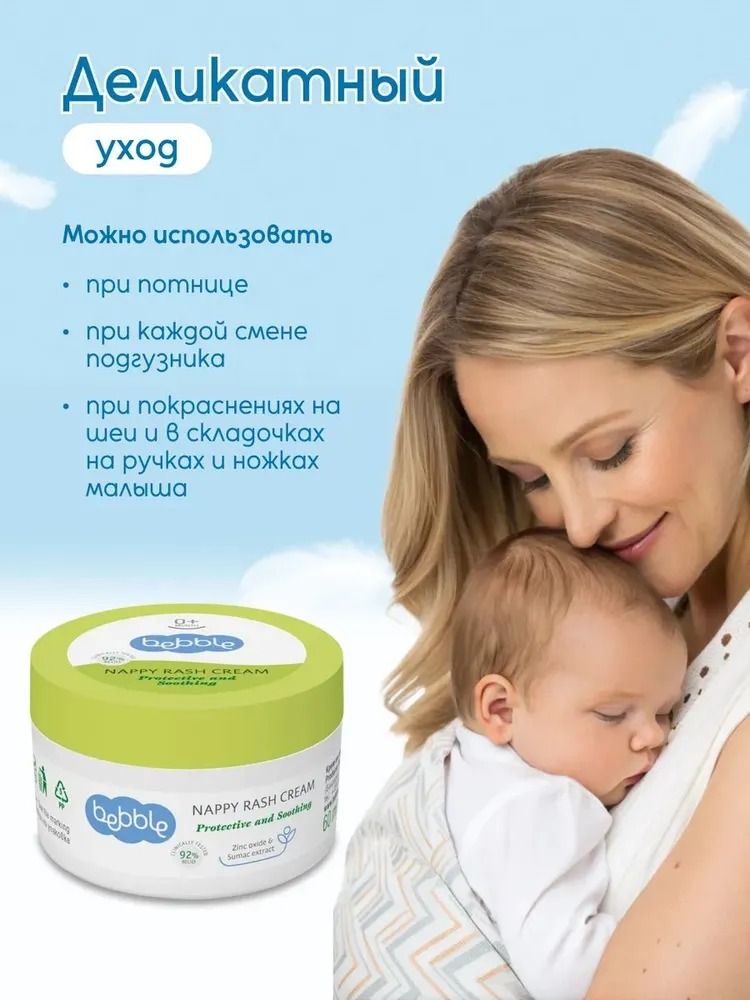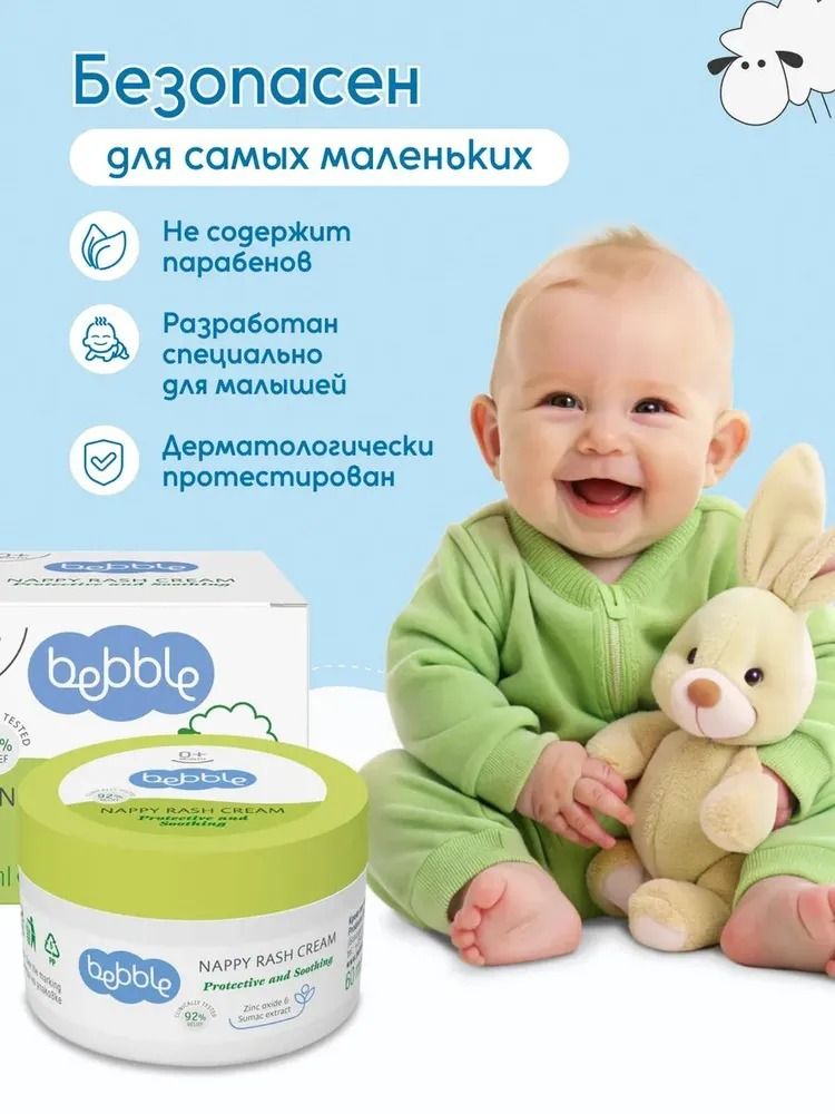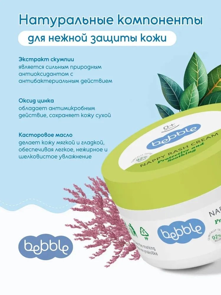 Bebble крем от опрелостей детский 60 мл специально разработан, для быстрой и эффективной помощи при кожных раздражениях и покраснениях. Он волшебно воздействует на проблемные зоны. Например, в зоне подгузника, на сгибах локтей, в области подмышек и коленей, за ушами и на шее. Эффективная формула крема успокаивает покраснение и дискомфорт на воспаленной и поврежденной коже. Оксид цинка, входящий в состав крема, широко используется вследствие его антимикробных свойств. Сохраняет кожу сухой и защищает от внешних факторов. Касторовое масло растительное масло, получаемое из семян растения «Клещевина Обыкновенная». Mасло действует как кондиционер, стабилизатор и пленкообразователь. Оставляет кожу мягкой и гладкой, обеспечивая легкое, нежирное и шелковистое увлажнение. Пользуйтесь кремом от опрелостей Bebble регулярно при первых признаках раздражения кожи. Он восстановит ее естественное состояние.