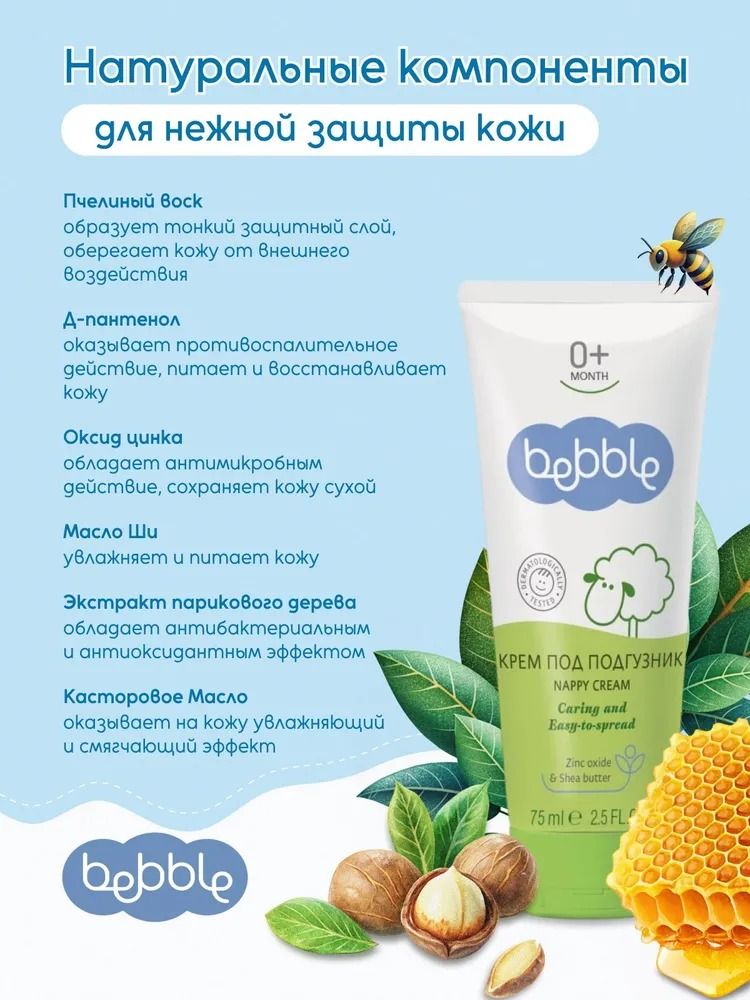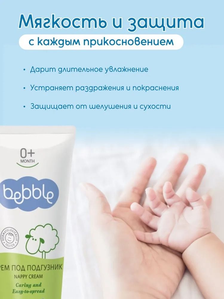 Превратите смену подгузника в приятное время препровождение со своим маленьким ангелочком, благодаря этому нежному защитному крему. Крем Bebble успокаивает деликатную кожу малыша в области под подгузником. Активные ингредиенты сохраняют кожу сухой и предохраняют от воспалений. Мягкая текстура образует тонкую водоотталкивающую пленку, которая защищает верхний слой кожи от раздражения из-за влаги. Крем богат натуральными маслами и D-пантенолом, которые питают и защищают кожу.