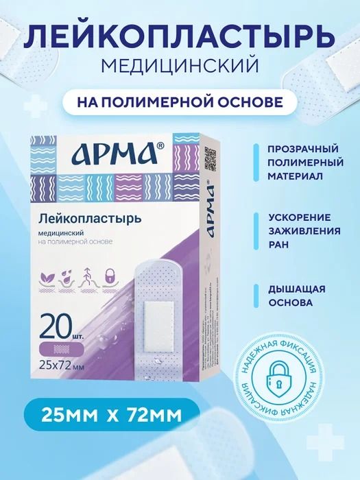 Читать все статьиЛейкопластырь мед. АРМА 25х72мм полимерный прозрачный №20/60пач/1200шт