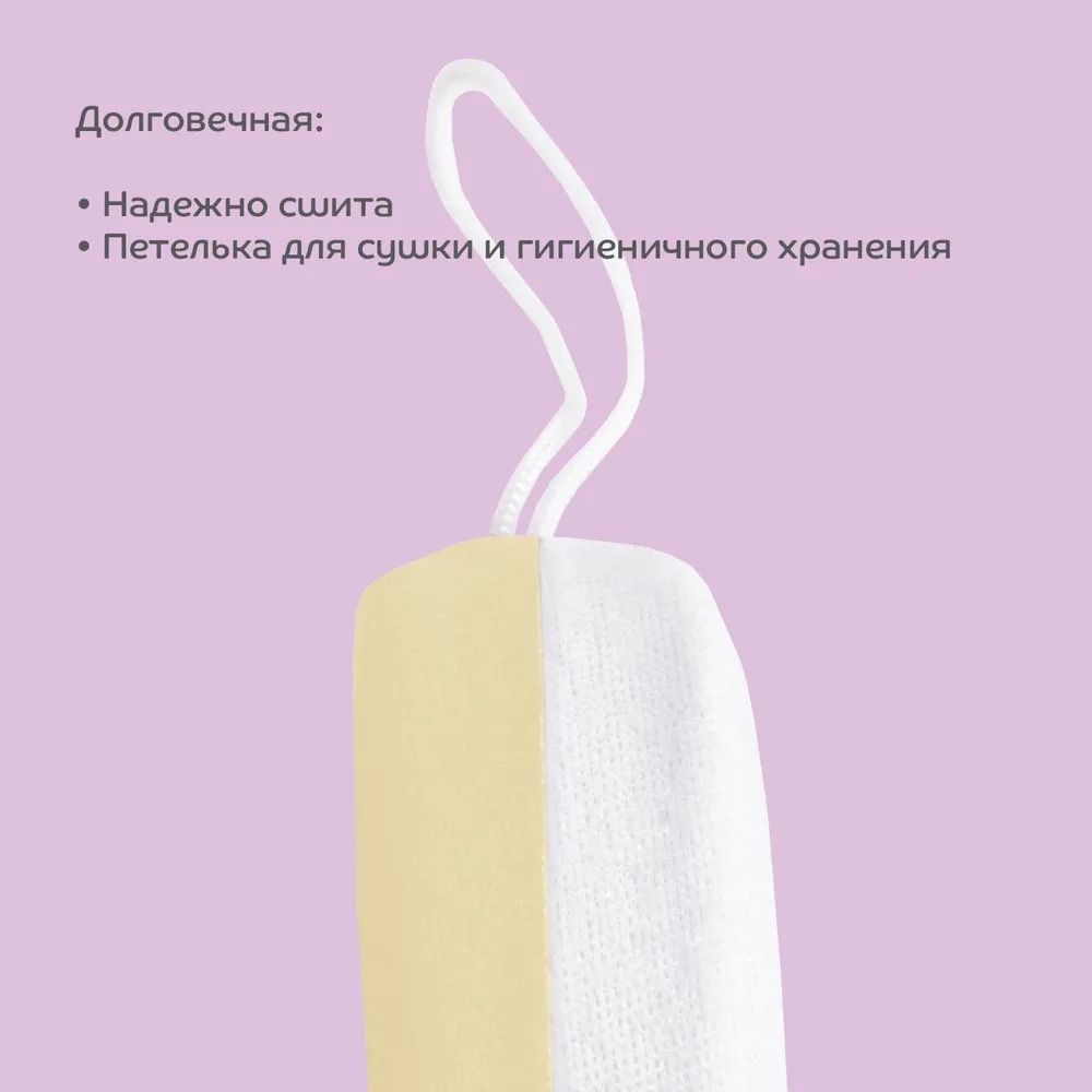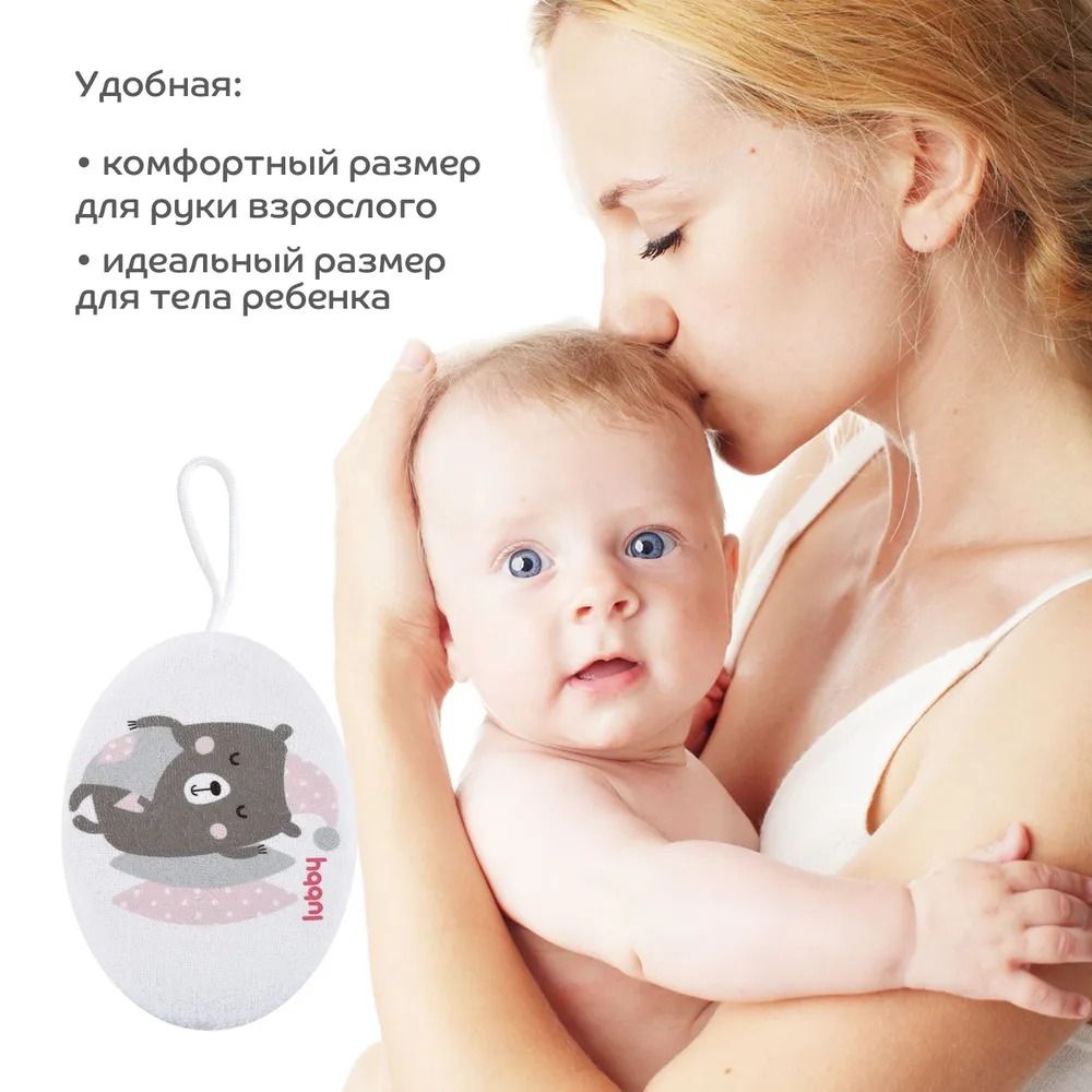 Мочалка предназначена для ухода за нежной детской кожей с рождения. Махровая поверхность бережно очищает кожу, не травмируя ее.