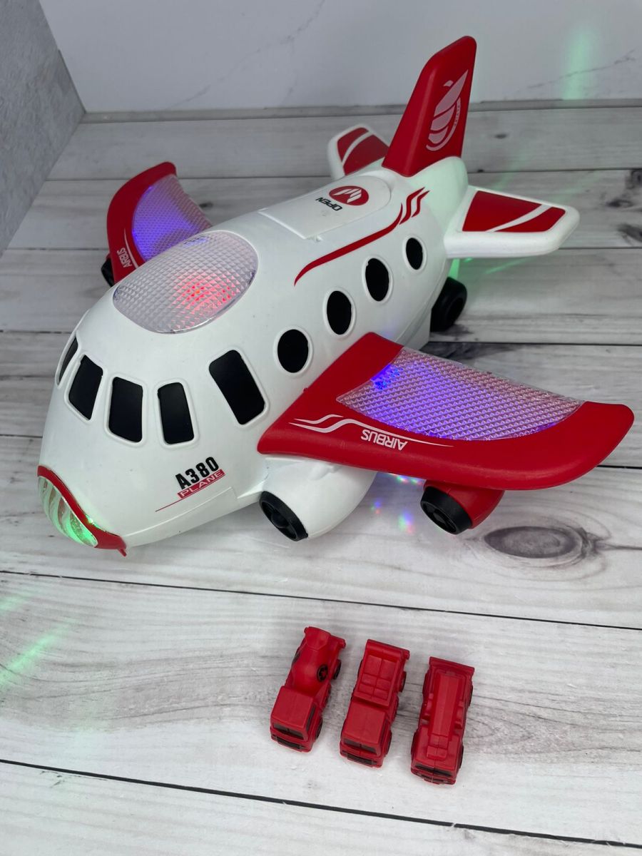 Игрушечный самолет со звуковыми и световыми эффектами и набором машинок поможет ребенку почувствовать себя бесстрашным пилотом.Игрушечный транспорт выполнен в реалистичном дизайне и привлекательной расцветке. Широкий функционал, качественное исполнение и подвижные элементы.В наборе самолет и 3 машинки.