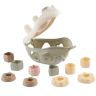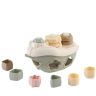 В корме корабля проделаны отверстия различных форм для подходящих вставок, на которых изображены животные. Красивый кораблик порадует еще и пищалкой.
