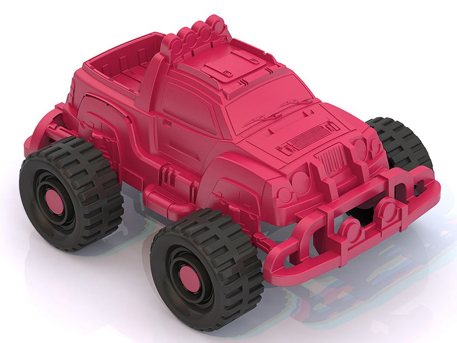Этот внедорожник создан специально для передвижения по самым сложным маршрутам. Мощные рельефные колеса и усиленный бампер без труда смогут преодолеть неровности дороги. На таком автомобиле можно отправиться в любое путешествие или поучаствовать в гонке! С помощью машинки ребенок развивают мелкую моторику, цветовое восприятие.