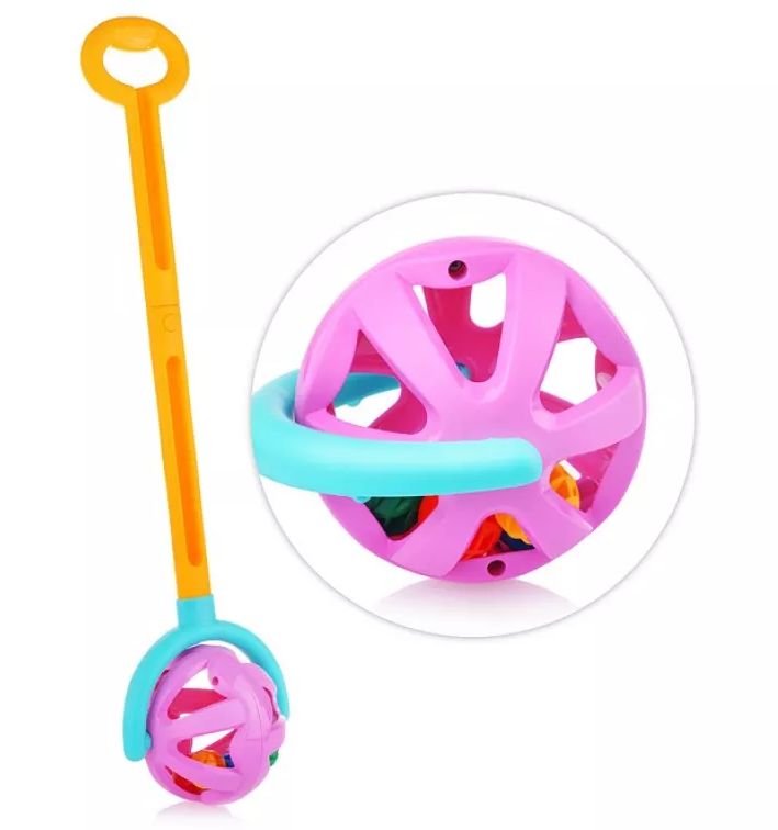 Каталка на палочке «Шарик» с удобной безопасной ручкой для ребенка и цветными шариками внутри для звукового эффекта. Каталка выполнена из яркого пластика, который не выгорает на солнце.