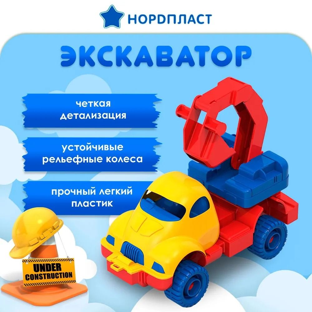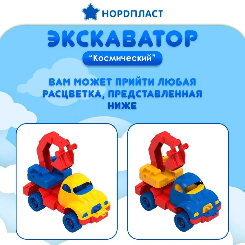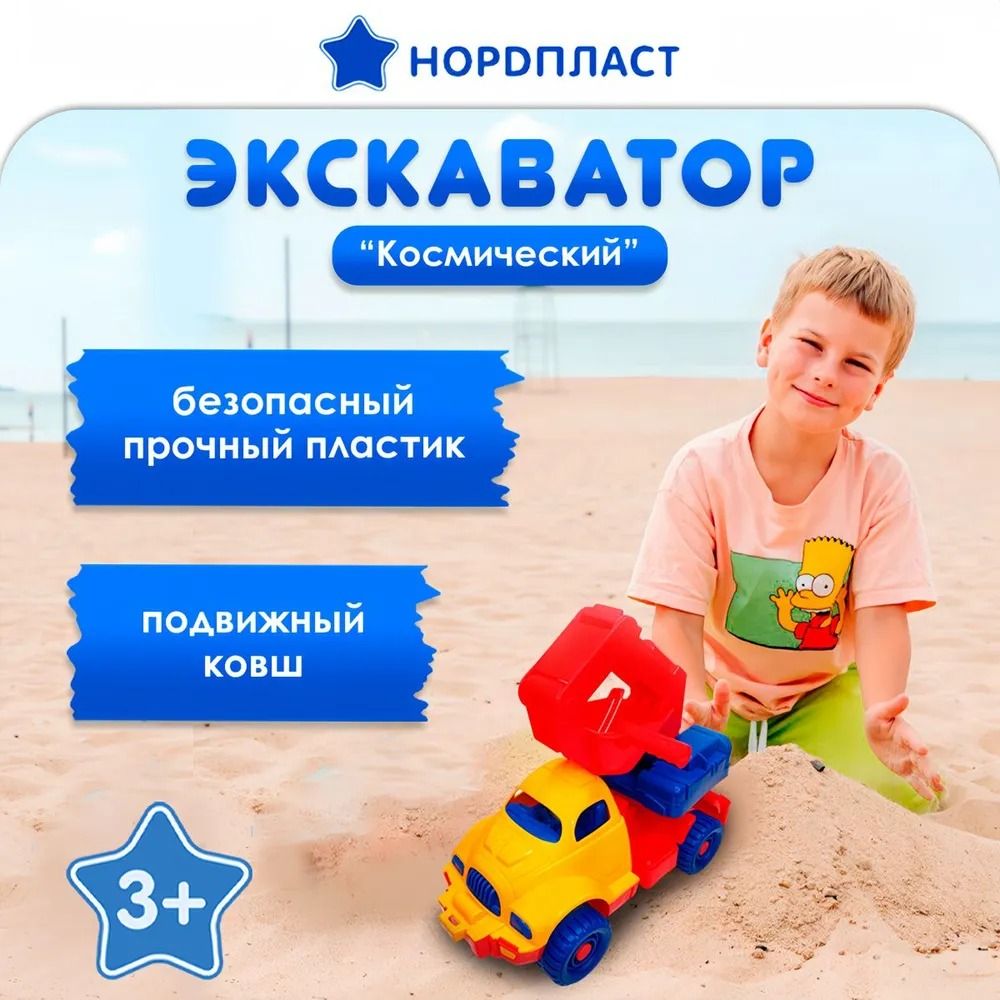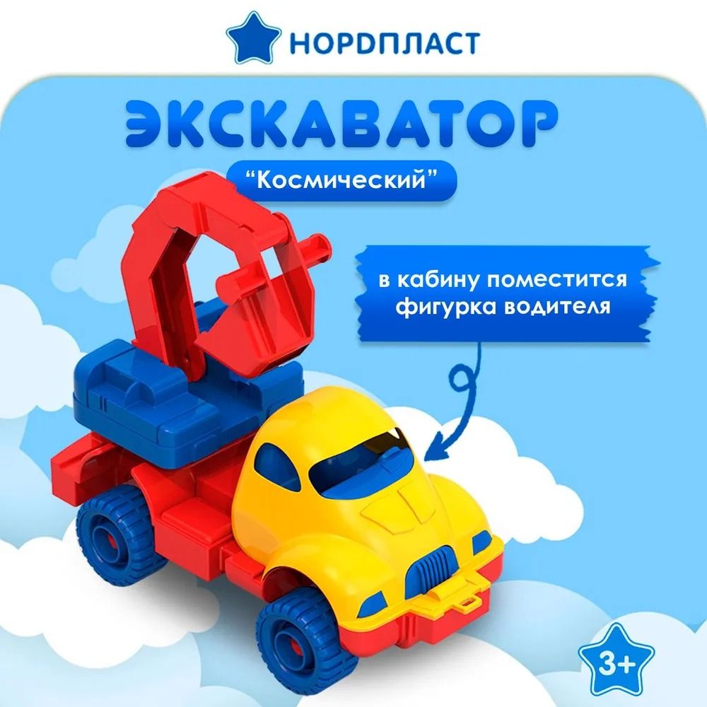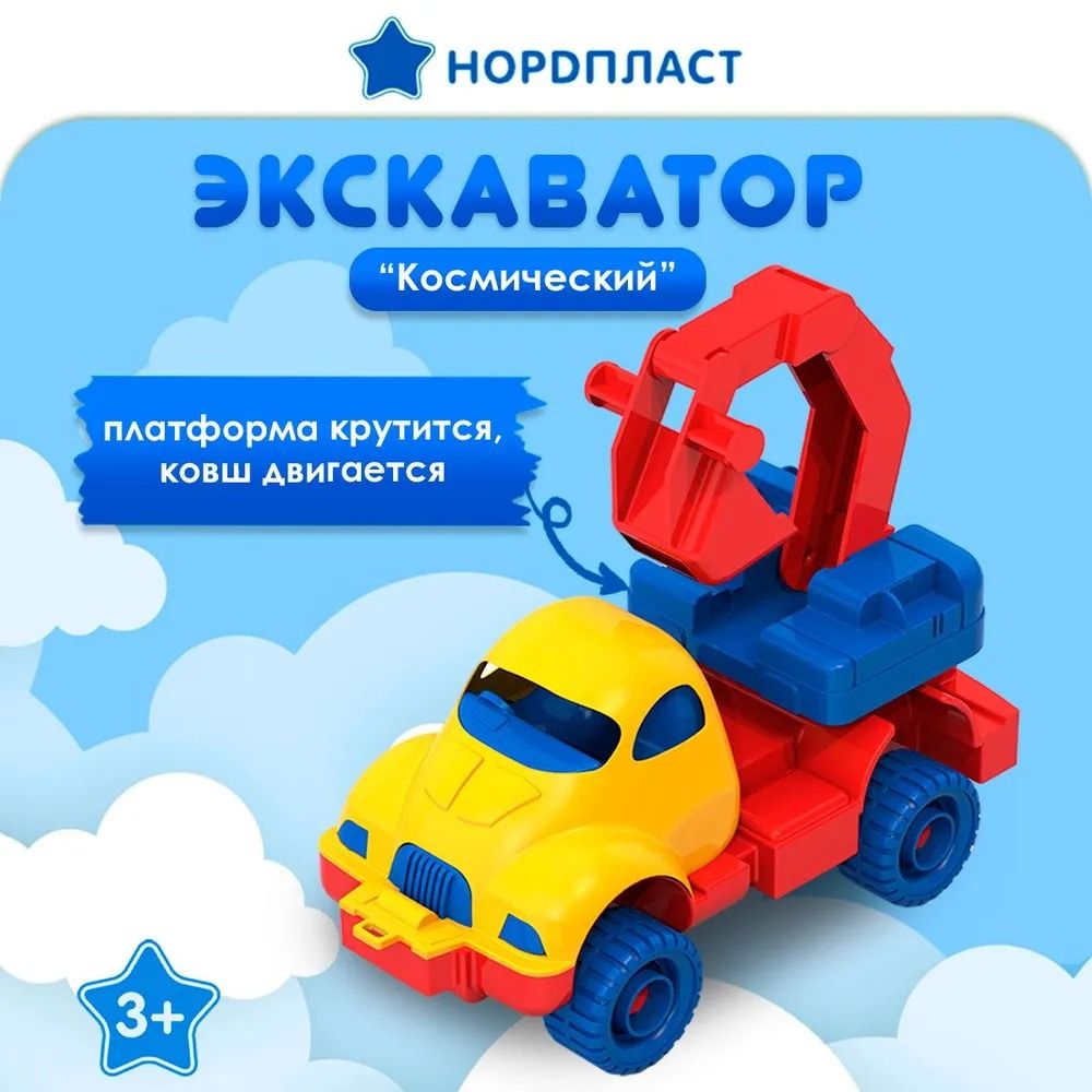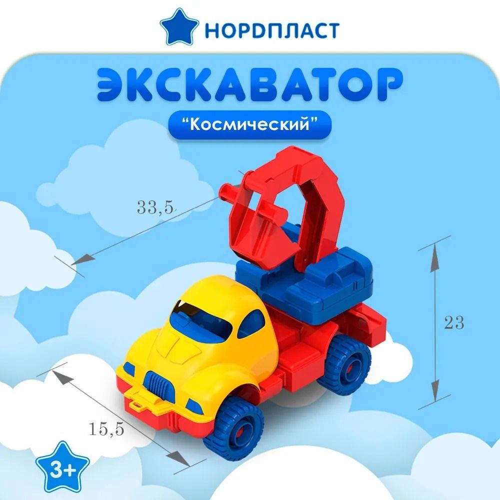 Экскаватор "Космический" - красивая, надежная машина для мальчиков на 4 колесах на металлических осях. Без нее просто не обойтись на стройке! Ковш поднимается и опускается, колеса крутятся.