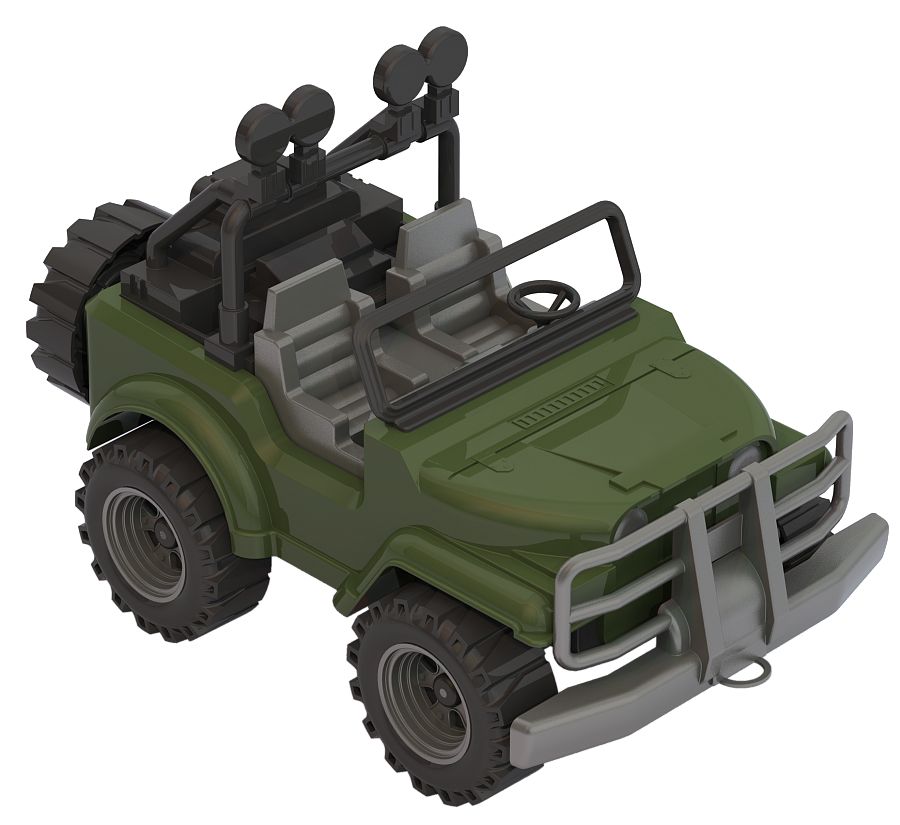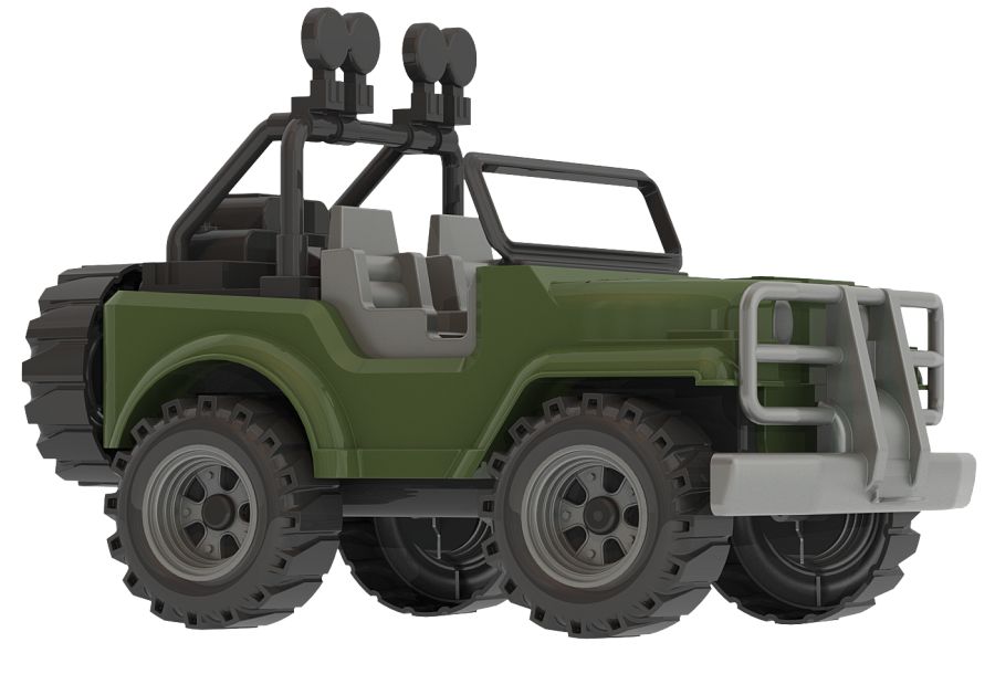 Внедорожник, созданный покорять всевозможные препятствия! Больше рельефные колеса и усиленный бампер обеспечивают проходимость в любой местности, а в кабину можно посадить две небольшие фигурки. Джип станет прекрасным дополнением к автопарку юного атомобилиста, поможет развить мелкую моторику, воображение. Колечко на бампере позволяет катать машинку с собой за веревочку. Сзади у джипа есть запасное колесо и канистра с бензином на случай непредвиденных ситуаций. Выпускается в нескольких цветовых гаммах и трех типах кузова - открытый джип (арт. 225, 135, 224), сафари (арт. 226, 136, 235) и закрытый джип (арт. 227, 137, 237). *безопасный прочный пластик, четкая деталировка, яркие цвета, которые не потускнеют со временем, надежное крепление подвижных деталей, размер 32,5*19*16,5 см