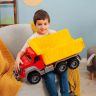 Устойчивые рельефные колеса и крепкий кузов позволяют выдержать достаточную нагрузку и перевезти игрушки или стройматериалы в пункт назначения.