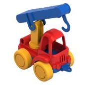 Устойчивые рельефные колеса и крепкий кузов позволяют выдержать достаточную нагрузку и перевезти игрушки или стройматериалы в пункт назначения. Кузов поднимается и опускается, колеса крутятся.