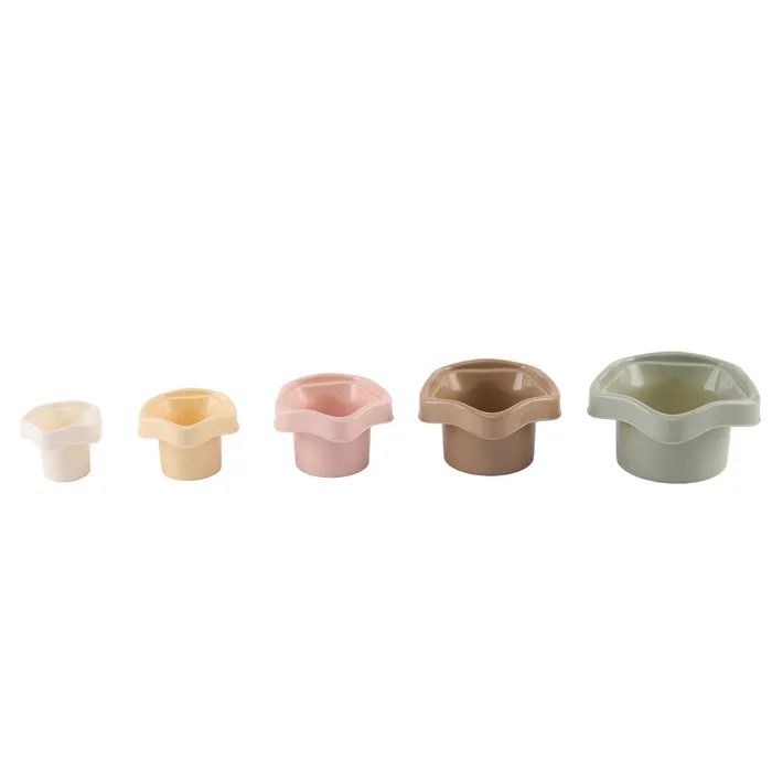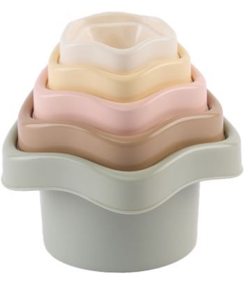 Ведерки вкладываются друг в друга по принципу матрешки, а также складываются пирамидкой.
