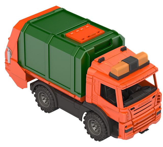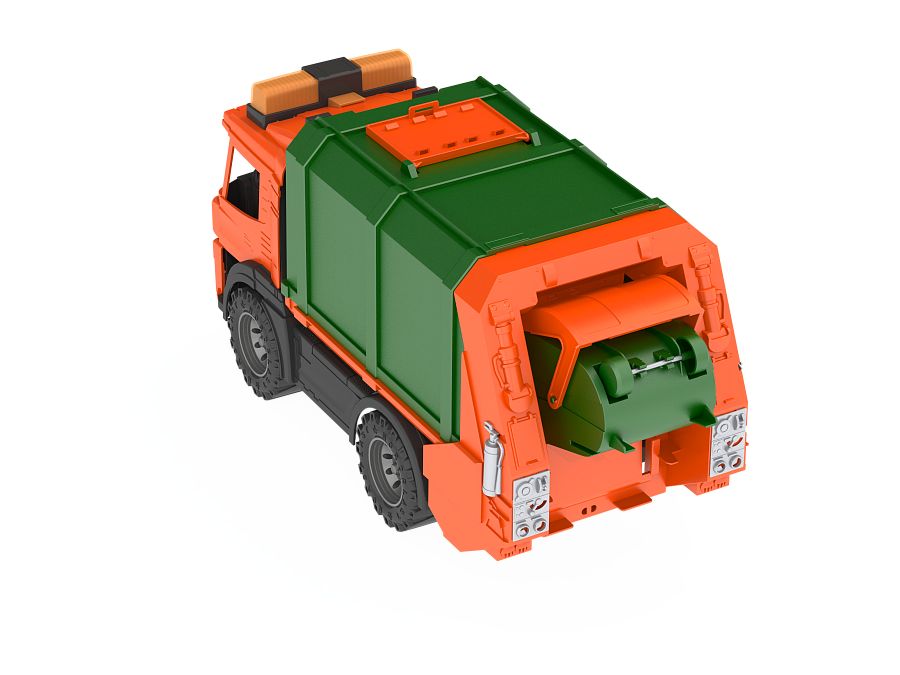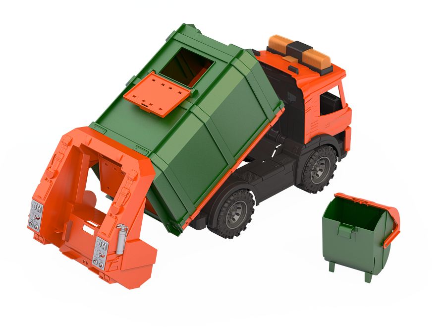 В наборе имеется мусорный бак, который автомобиль может загрузить в контейнер.