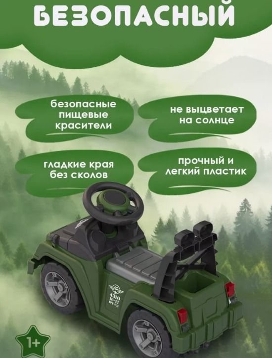 Термопечать, используемая вместо наклеек, обеспечивает долговечность рисунка в течение всего срока эксплуатации. Руль, удобная спинка, шероховатое покрытие на сиденье для предотвращения скольжения, а также мощные рельефные колеса, обеспечивающие отличное сцепление и устойчивость, делают эту каталку пушкар идеальной для развития фантазии, координации движений, управления и пространственного мышления ребенка.