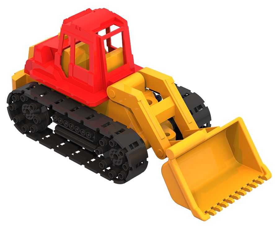 Многофункциональная машинка для игры в песочнице и дома оснащена подвижным грейдером, который с легкостью расчистит площадку для строительства.