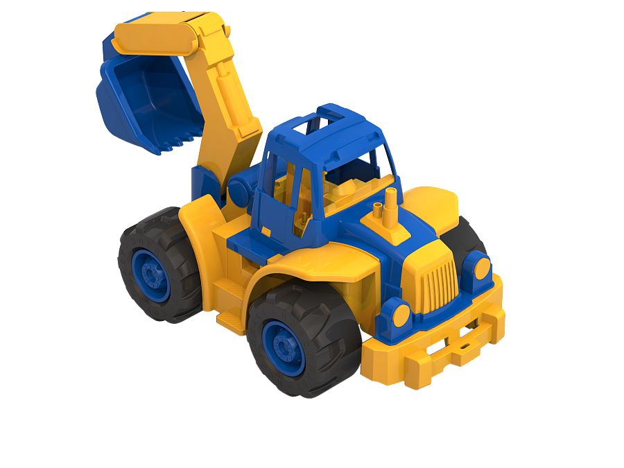 Многофункциональная машинка для игры в песочнице и дома оснащена мощным подвижным ковшом, который поднимается и перемещается по сторонам и без труда расчистит площадку для строительства.