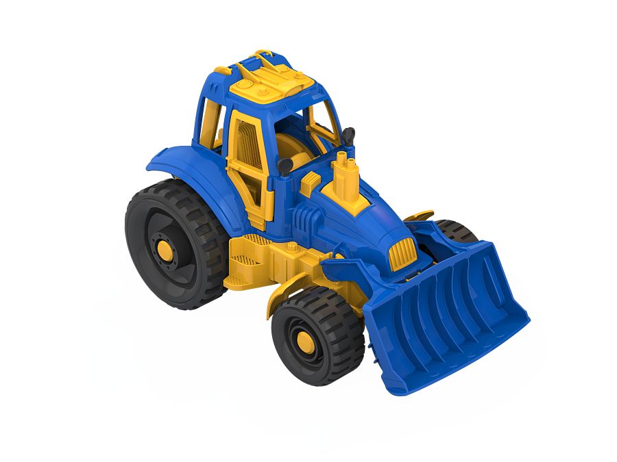 Большие крутящиеся колеса обеспечивают трактору отличную проходимость в любых условиях, в кабину можно поместить небольшую фигурку водителя. Игрушка знакомит ребенка с устройством техники, развивает мелкую моторику, цветовое восприятие, воображение.